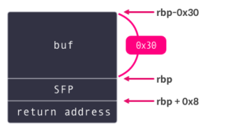: ๊ทธ๋์ buf๋ rbp-0x30์ ์๊ณ ์คํ ํ๋ ์ ๊ตฌ์กฐ์์ rbp ์ฃผ์์๋ SFP๊ฐ ๋ค์ด ์๊ณ ๋ค์ ์ฃผ์์ RET์ด ๋ค์ด ์๋ค๊ณ ๋ณผ ์ ์๋ค.