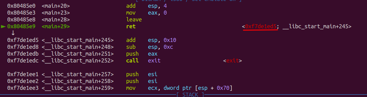 # 0x080485db <+15>: call 0x80483d0 <gets@plt>