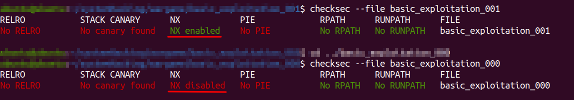 : ์ ์ฌ wargame์ธ 'basic_exploitation_000' ๊ณผ ๋ค๋ฅธ ์ ์ nx bit๊ฐ ์กด์ฌํ๋ค๋ ์ ์ด๋ค.