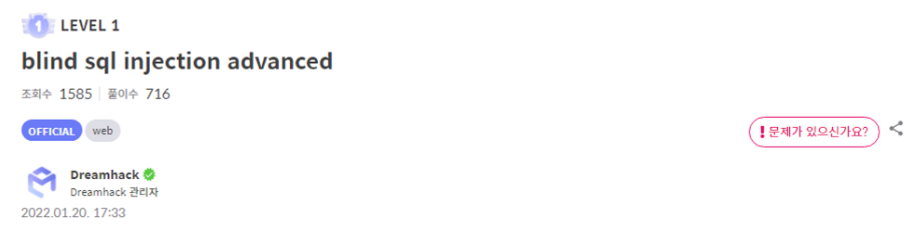 Exercise: Blind SQL Injection Advanced์์ ์ค์ตํ๋ ๋ฌธ์ ์ด๋ค.