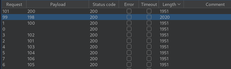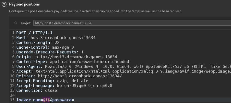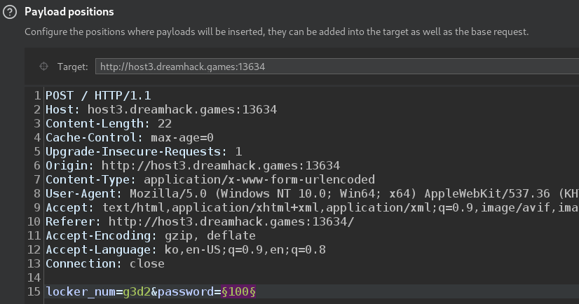 : ์ฌ๋ฌผํจ ๋ฒํธ(locker_num)์ ๊ฐ์ ํ์ธํ๊ธฐ ์ํด a-z0-9(Payload count: 36)๊น์ง Brute-Forceํ๋ค.