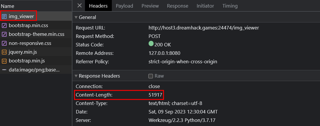 : #3์ "/static/dream.png'์ ์๋ต์ Content-Length๋ 51917์ธ ๊ฒ์ ํ์ธํ ์ ์๋ค."๋ผ๋ ๊ฒฐ๊ณผ์๋ ๋ค๋ฅด๊ฒ Content-Length๊ฐ ๋์ค๊ฒ ๋๋ค.